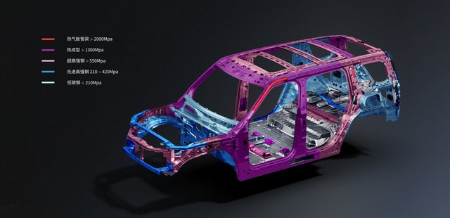 猛士M817全车高强钢占比高达83.2%,其中2000MPa热成型材料结构总长度达12.48米,相当于4-5头成年大象站在一枚硬币上的强度。即便在越野途中遭遇磕碰,高强度钢材也能有效抵抗车身变形,为车内人员提供安全空间。